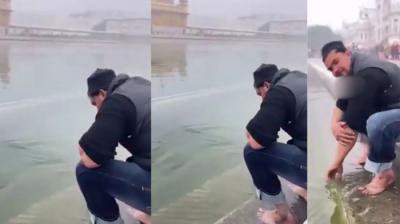अमृतसर स्थित स्वर्ण मंदिर के सरोवर में मुस्लिम युवक ने धोए हाथ और किया कुल्ला