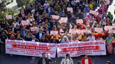 नई दिल्ली: मणिपुर में सरकार गठन को लेकर चल रही गहमागहमी के बीच, कुकी जो काउंसिल (KZC) और इंडिजिनस ट्राइबल लीडर्स फोरम (ITLF) ने बुधवार को भारतीय संविधान के अनुच्छेद...