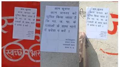 बीजेपी के दलालों के साथ थाने में प्रवेश न करें, नरयावली कस्बे में जगह-जगह लगे पोस्टर