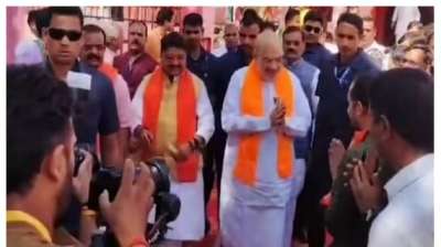 कमलनाथ के गढ़ छिंदवाड़ा में अमित शाह ने सबसे पुराने श्रीराम मंदिर में माथा टेका, कई नेता रहे मौजूद