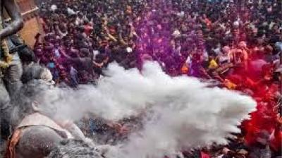 रंग नहीं, डोलची की बौछारें; पावटा में धुलंडी के अगले दिन अनोखी होली