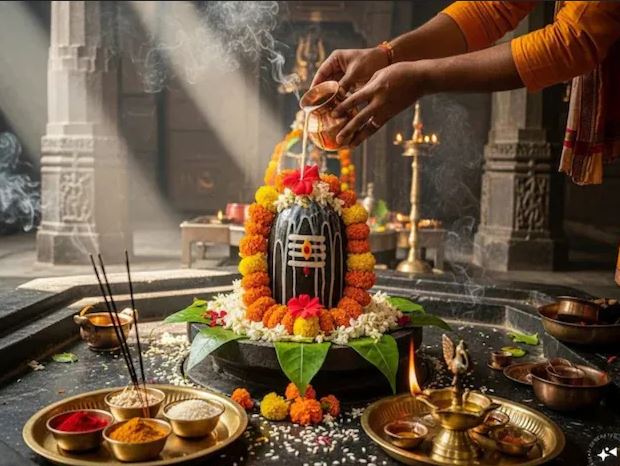रुद्राभिषेक में जल, दूध, दही, घी, शहद और बेलपत्र से शिवलिंग का अभिषेक किया जाता है.