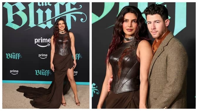 फिल्म 'द ब्लफ' के वर्ल्ड प्रीमियर में कलाकार और निर्माता प्रियंका चोपड़ा जोनस और निक जोनस 17 फरवरी, 2026 को लॉस एंजिल्स पहुंचे। प्रियंका और निक की कुछ तस्वीरें और वीडियो सोशल नीडिया पर जमकर वायरल हो रहे हैं।