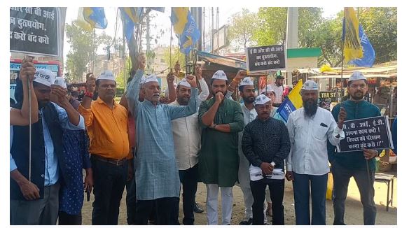 केजरीवाल की गिरफ्तारी के खिलाफ आप का प्रदर्शन, बताया लोकतंत्र का काला दिन