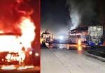मैहर में दौड़ती स्लीपर बस में लगी भीषण आग, ड्राइवर-कंडक्टर ने कूदकर बचाई जान